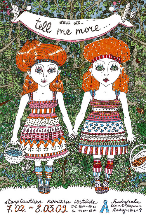 Drawing for the poster of international comix exhibition „Tell me more…“ (2009),
